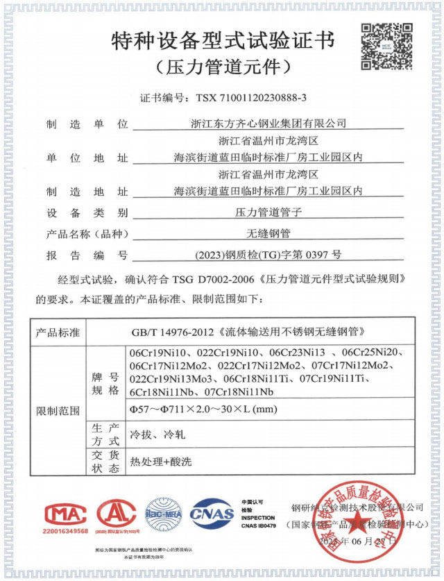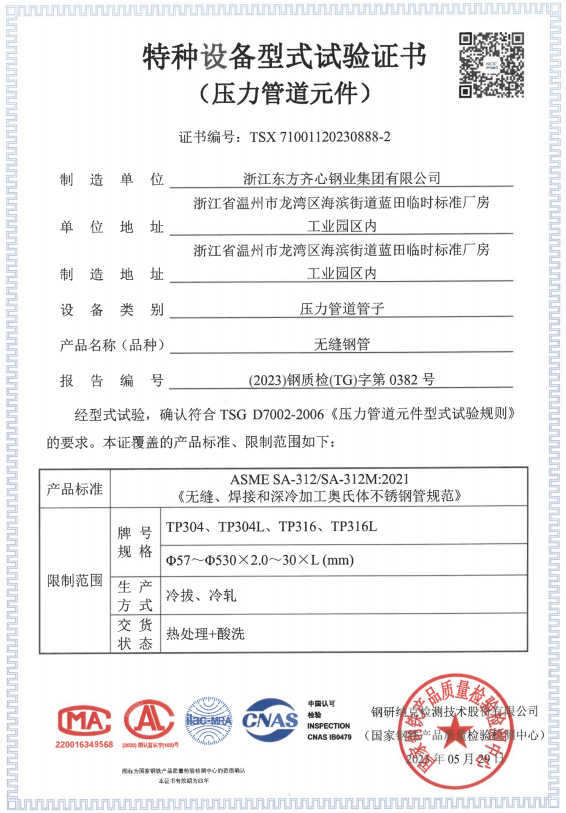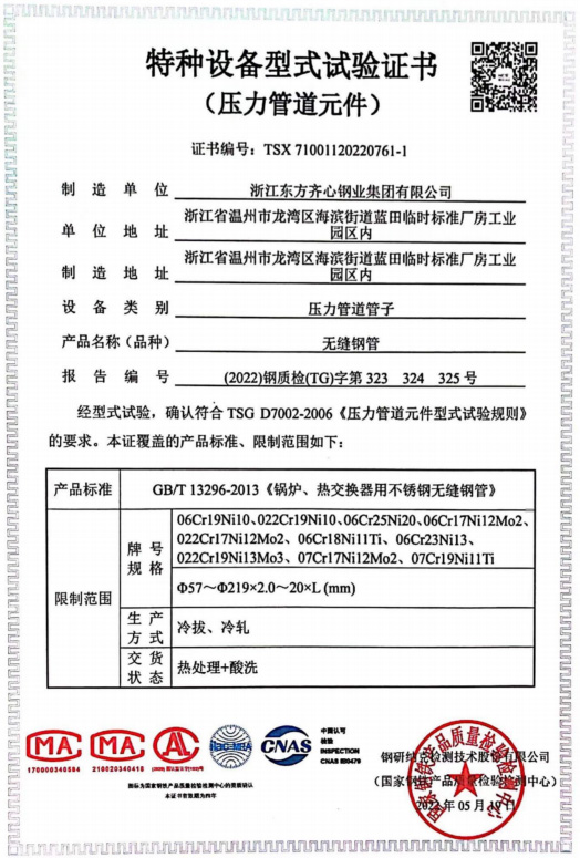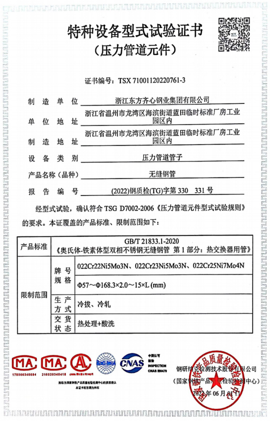 浙江東方齊心以不銹鋼系列產(chǎn)品為主導(dǎo),品種有不銹鋼管、奧氏體不銹鋼管、高溫合金鋼管、雙相不銹鋼管、鎳基合金管、冷凝器用管、U形管、核電管、不銹鋼管件、法蘭、閥門等。規(guī)格有6-2020x0.8-60mm,Ф16-25長度可達(dá)33m。公司擁有精密制造鋼管的各類機械設(shè)備25臺(套),其中各類冷軋管機15臺, 冷拔機10臺,天然氣熱處理爐2套。